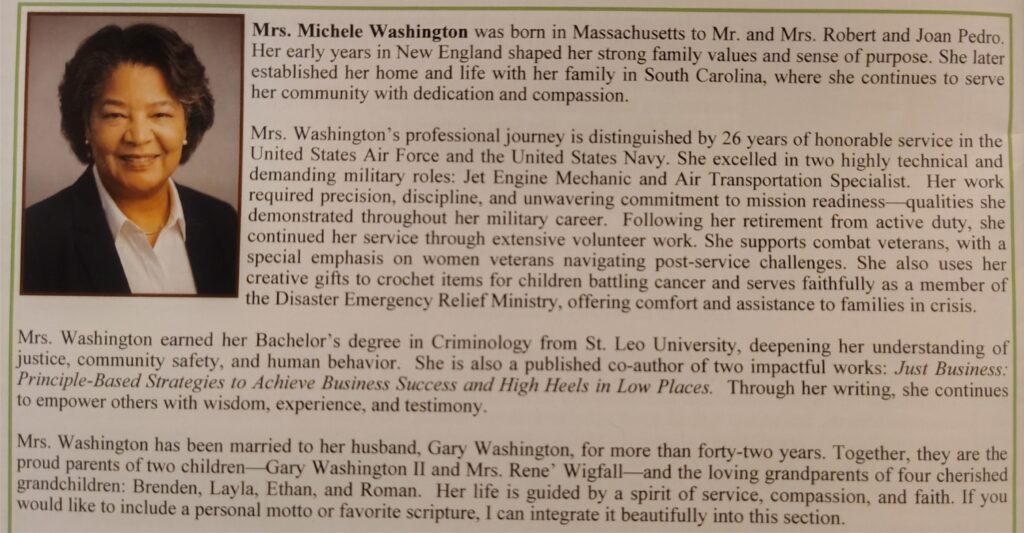 Mr. Washington is a Junior Achievement Instructor, 4H Club Mentor, Future Business Leader of America (FBLA) Consultant, Instructor and Judge. We have taught through CEC training principles: valedictorians, owners of companies, engineers, military members, corporate managers, medical technicians and many other industries.